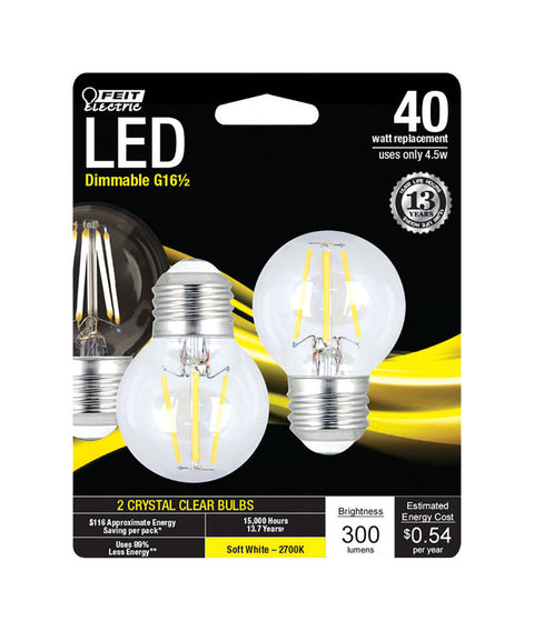 FEIT Electric LED Bulb 4.5 watts 300 lumens 2700 K Globe G16-1/2 Soft White 40 watts equivalenc